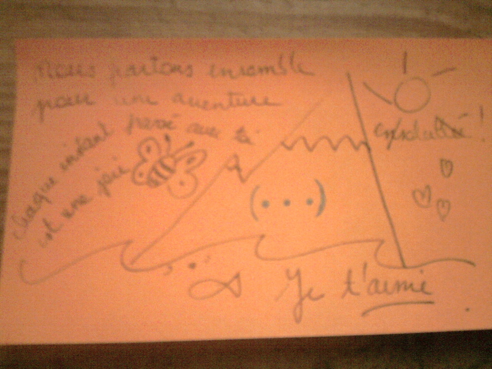 Dix ans ont passé et Paul Vignaut parsème toujours sa vie des derniers mots doux de sa femme. La semaine dernière, il en a trouvé un nouveau, dans une vieille valise parquée dans les combles. Une valise qu'il n'avait pas ouvert depuis dix ans. La valise qu'elle avait préparée pour leurs vacances communes en Corse… ("nous partons ensemble pour une aventure ensoleilée, chaque instant passé avec toi est une joie, je t'aime", un dessin d'une montagne donnant sur la mer avec un gros soleil, un papillon, un poisson et des coeurs).