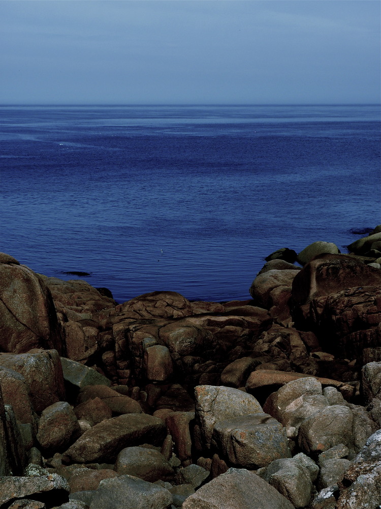 They've witnessed countless tempests, these rocks. They've been hit by constant waves since the beginning of time, letting the water shape them slowly, letting it take away and change their roughness into smooth round surfaces.