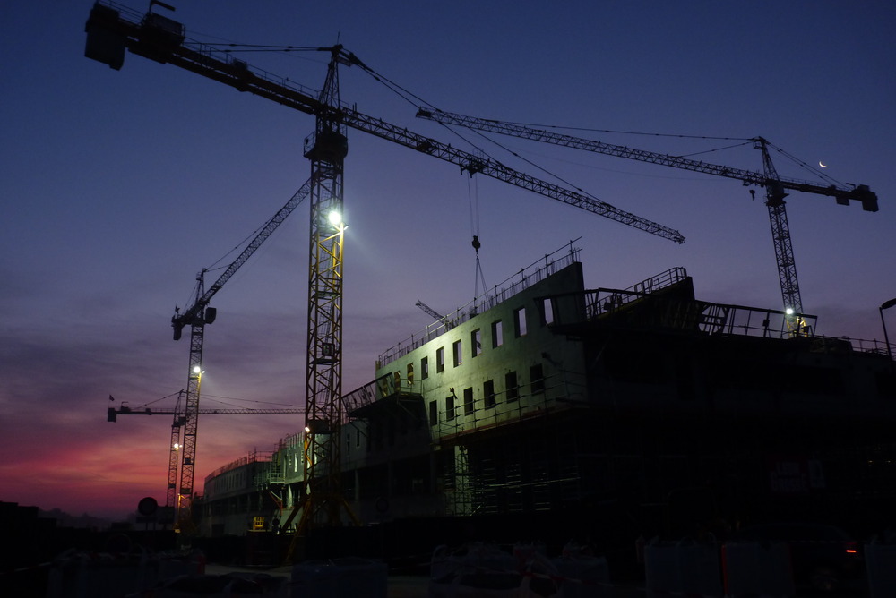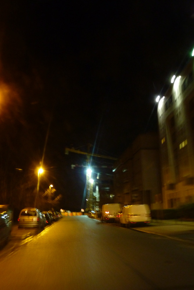 Tonight, things are different. Tonight, like yesternight and perhaps tomorrow, John is watching cranes. Cranes are grounded, they can never go anywhere. They shape the things to come while remaining immune to the wind of change. Tonight, perhaps, John has met an angel. He doesn’t know, yet, what choices will be his own. “Choice” is a word again, life is exciting and hopeful. He may stand still for a while, or it would seem so because some steps are so small they may seem inexistent. But, he knows. But, for once, his eyes are closed towards the light growing within his soul.
